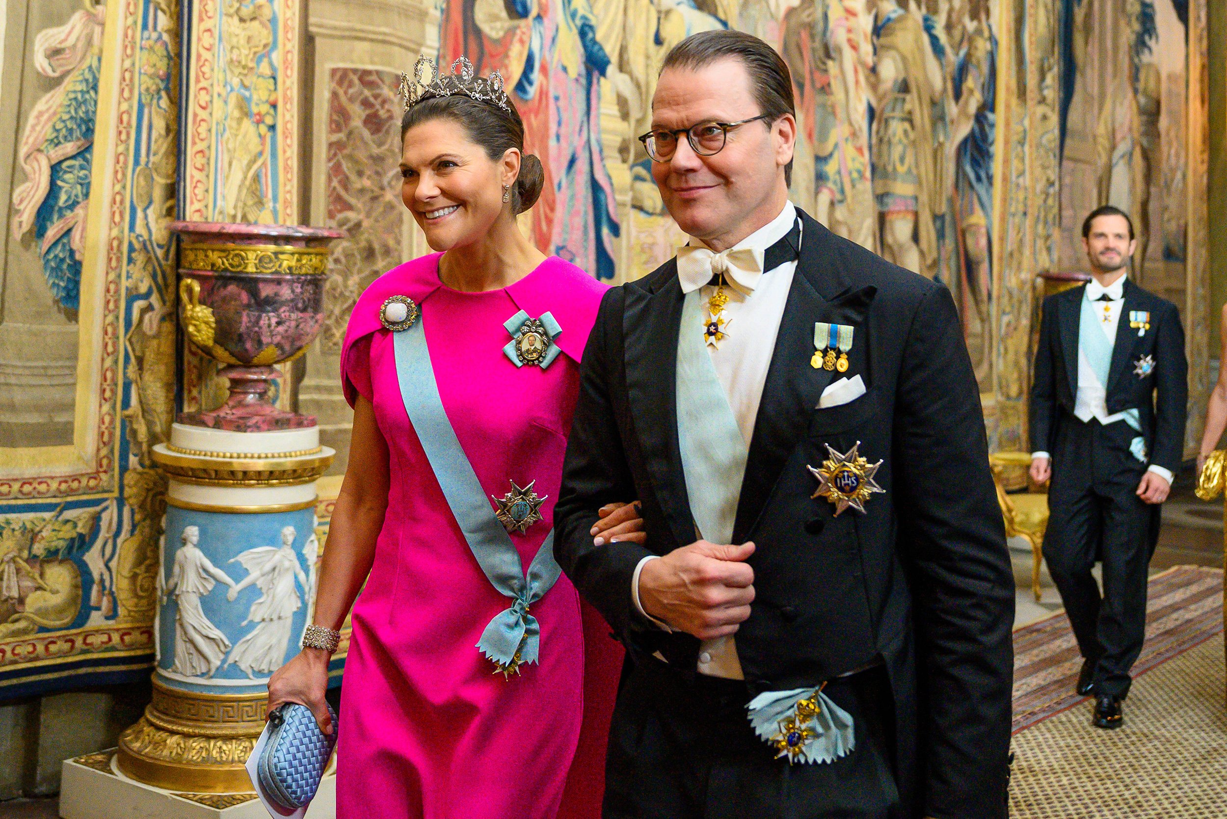 Crown Princess Victoria of Sweden and Prince Daniel of Sweden attend the official dinner hosted in honour of the 2025 Nobel Laureates at the Royal Palace on 11 December 2025 in Stockholm, Sweden.