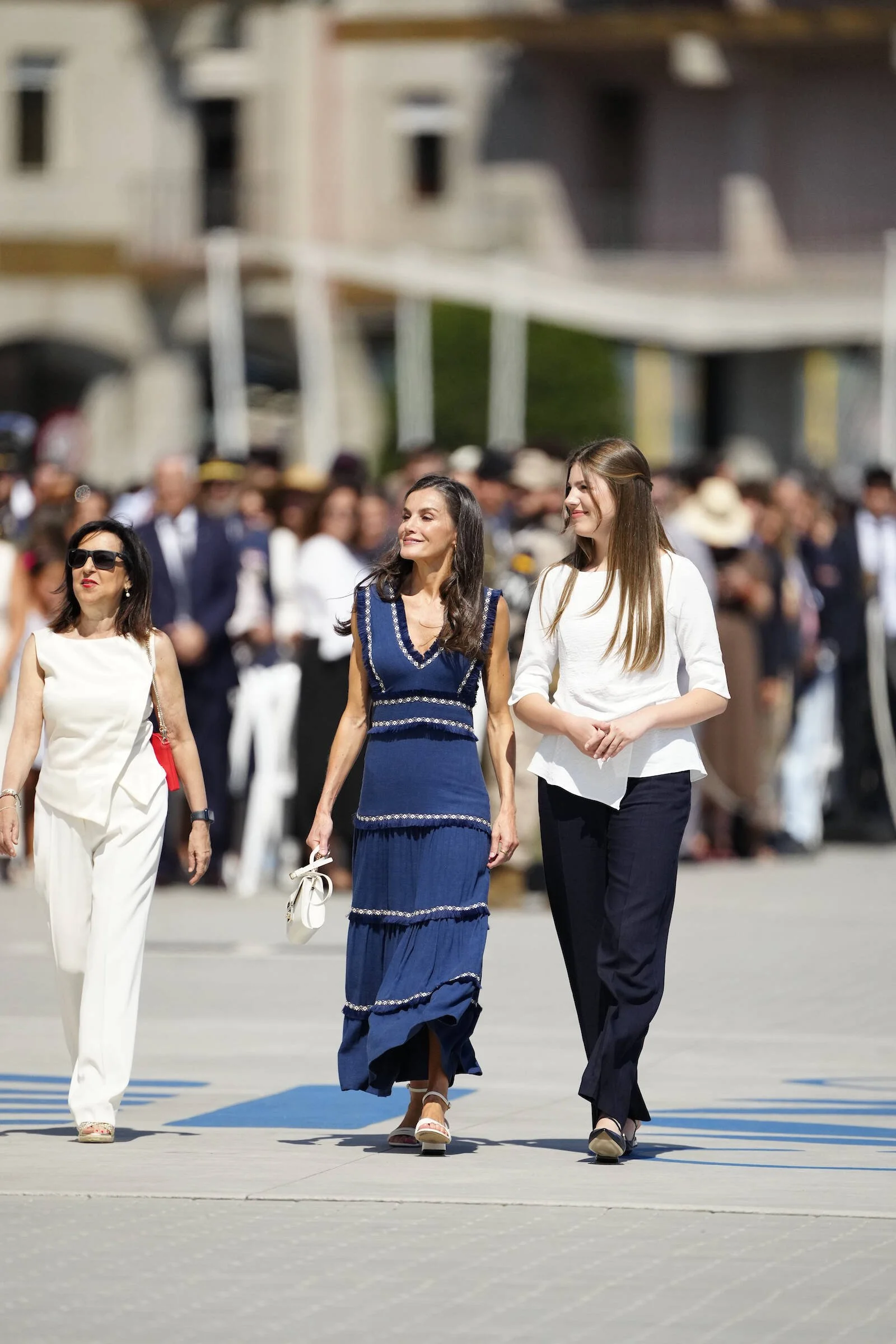 Infanta Sofia of Spain accompanies her parents King Felipe and Queen Letizia of Spain to the ceremonial presentation of new Royal dispatches at Escuela Naval on 16 July 2025 in Marin, Pontevedra, Spain.