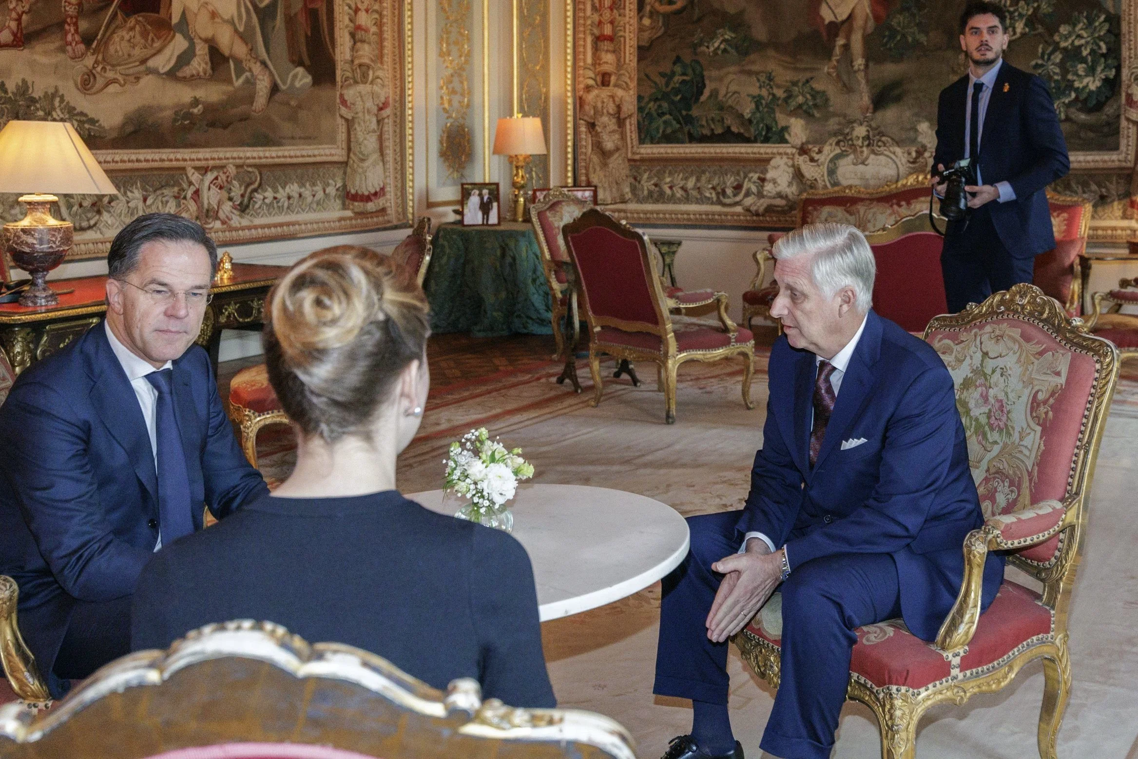King Philippe of Belgium, accompanied by Princess Elisabeth, Duchess of Brabant, receives Mark Rutte, Secretary General of NATO at Chateau de Laeken on 15 January 2026 in Brussels, Belgium.