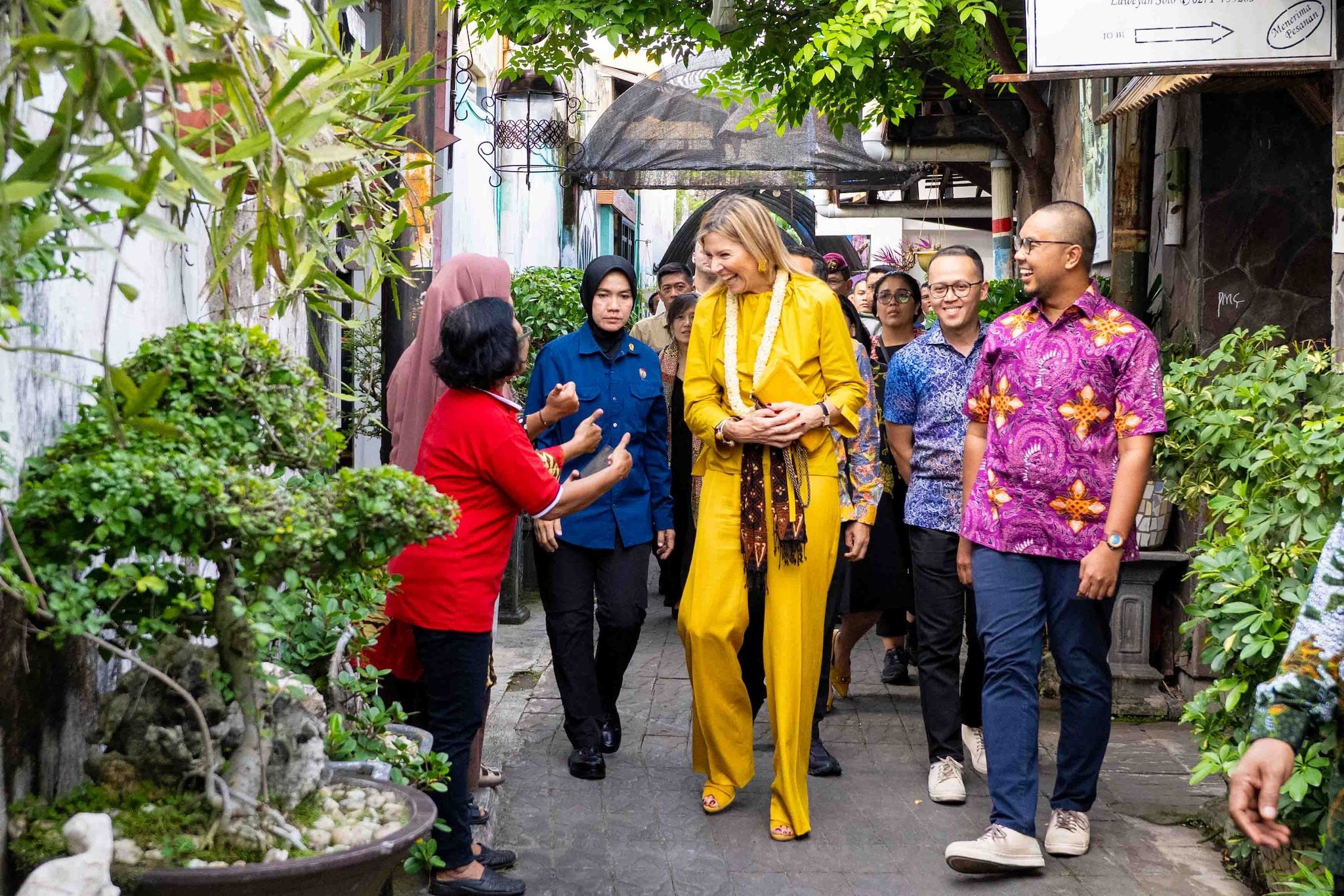 Queen Maxima of the Netherlands, in her capacity as the UN Secretary-General's Special Advocate for Inclusive Finance for Development (UNSGSA), visits the Laweyan Batik Village in Surakarta, Central Java on 25 November 2025.