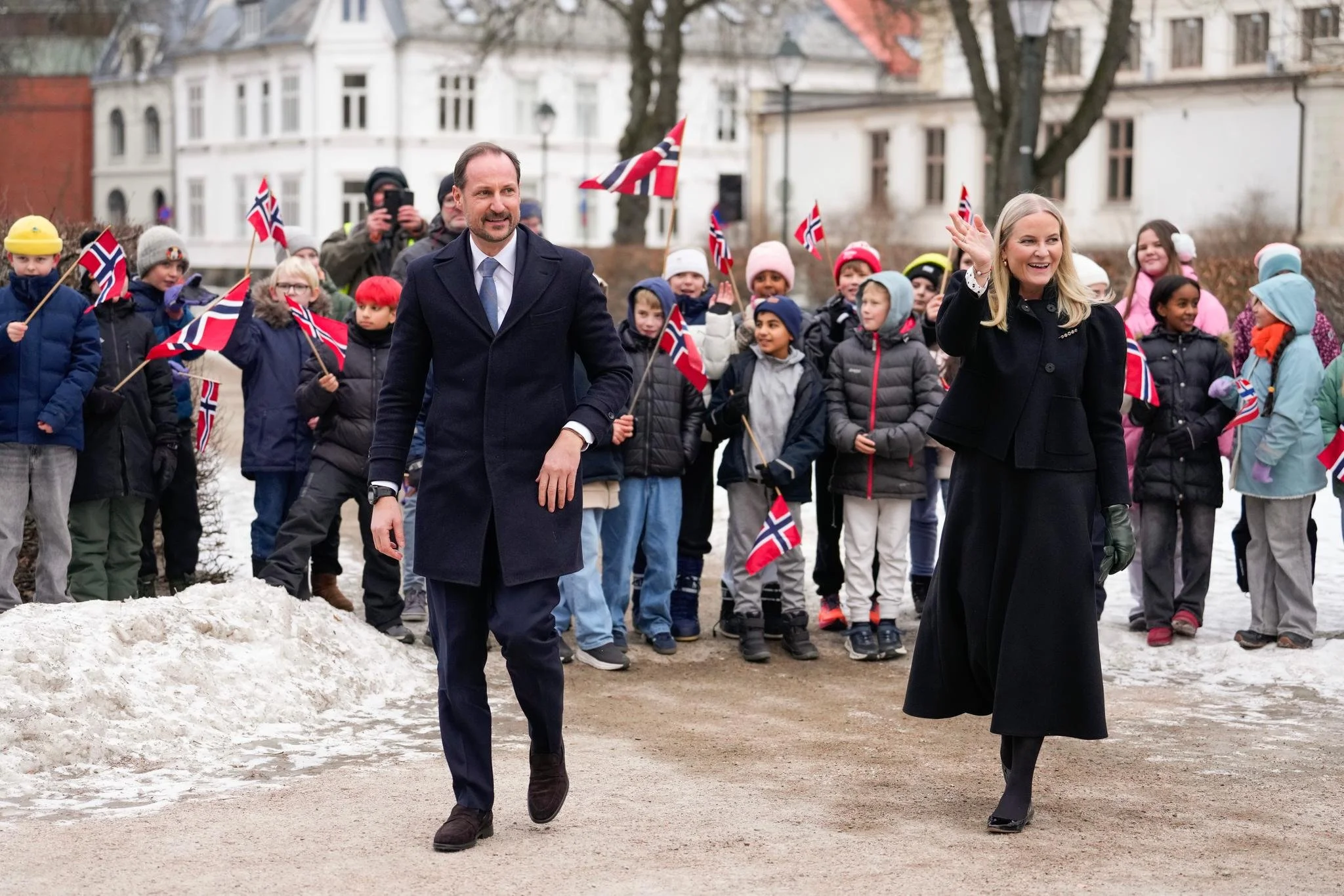 Crown Prince Haakon and Crown Princess Mette-Marit of Norway attend the event marking the 100th anniversary of Fredrikstad Library on 29 January 2026 in Fredrikstad, Norway.