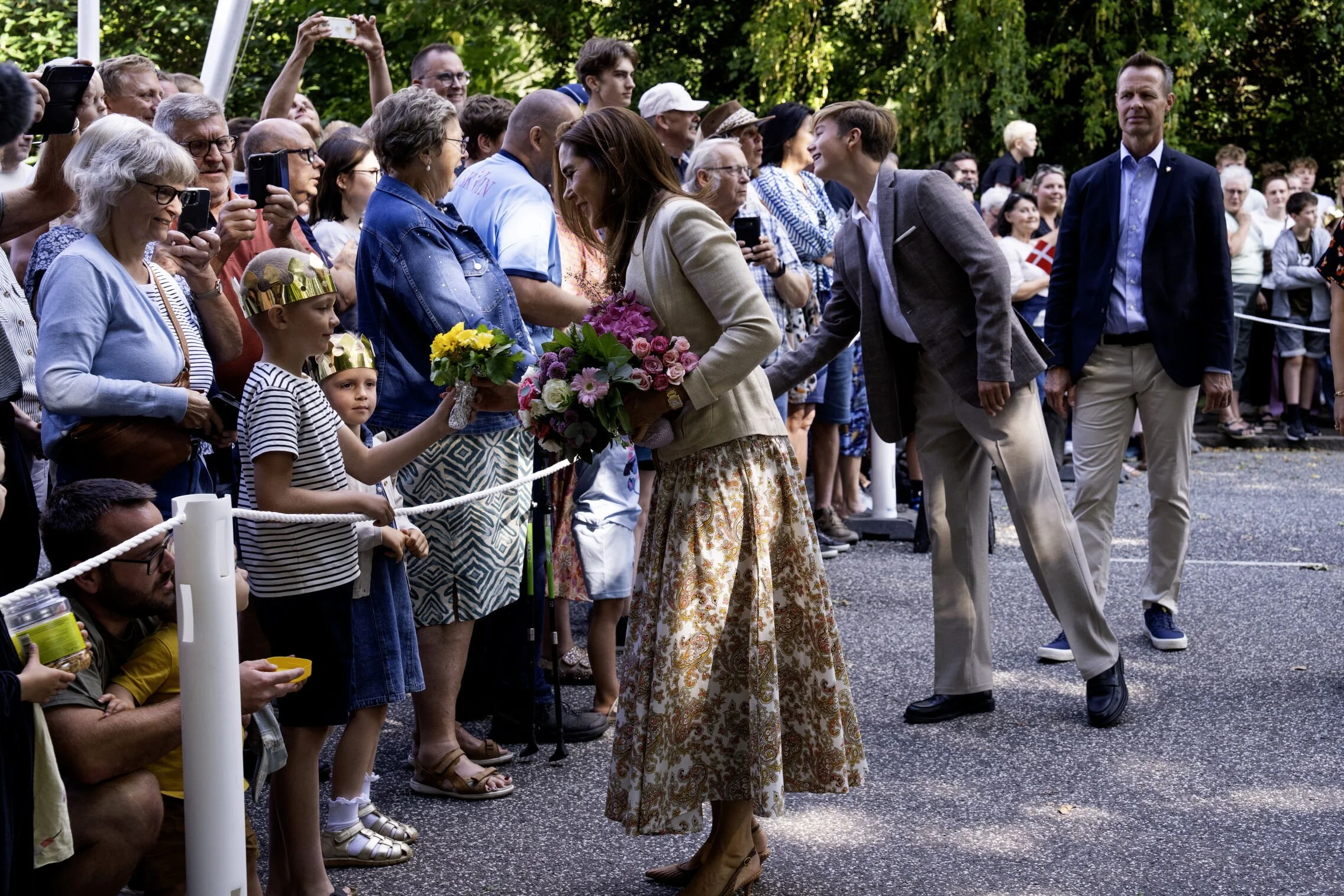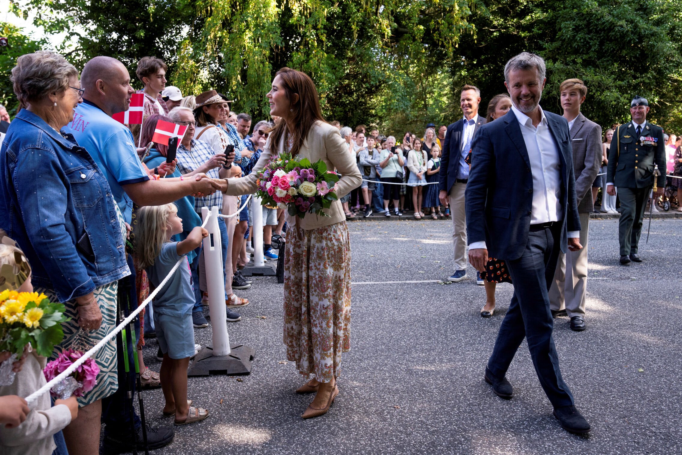 King Frederick X and Queen Mary of Denmark, Princess Isabella and Prince Vincent arrive at the Royal Family’s summer residence, the Gråsten Palace, on 28 July 2025 in Gråsten, Denmark.