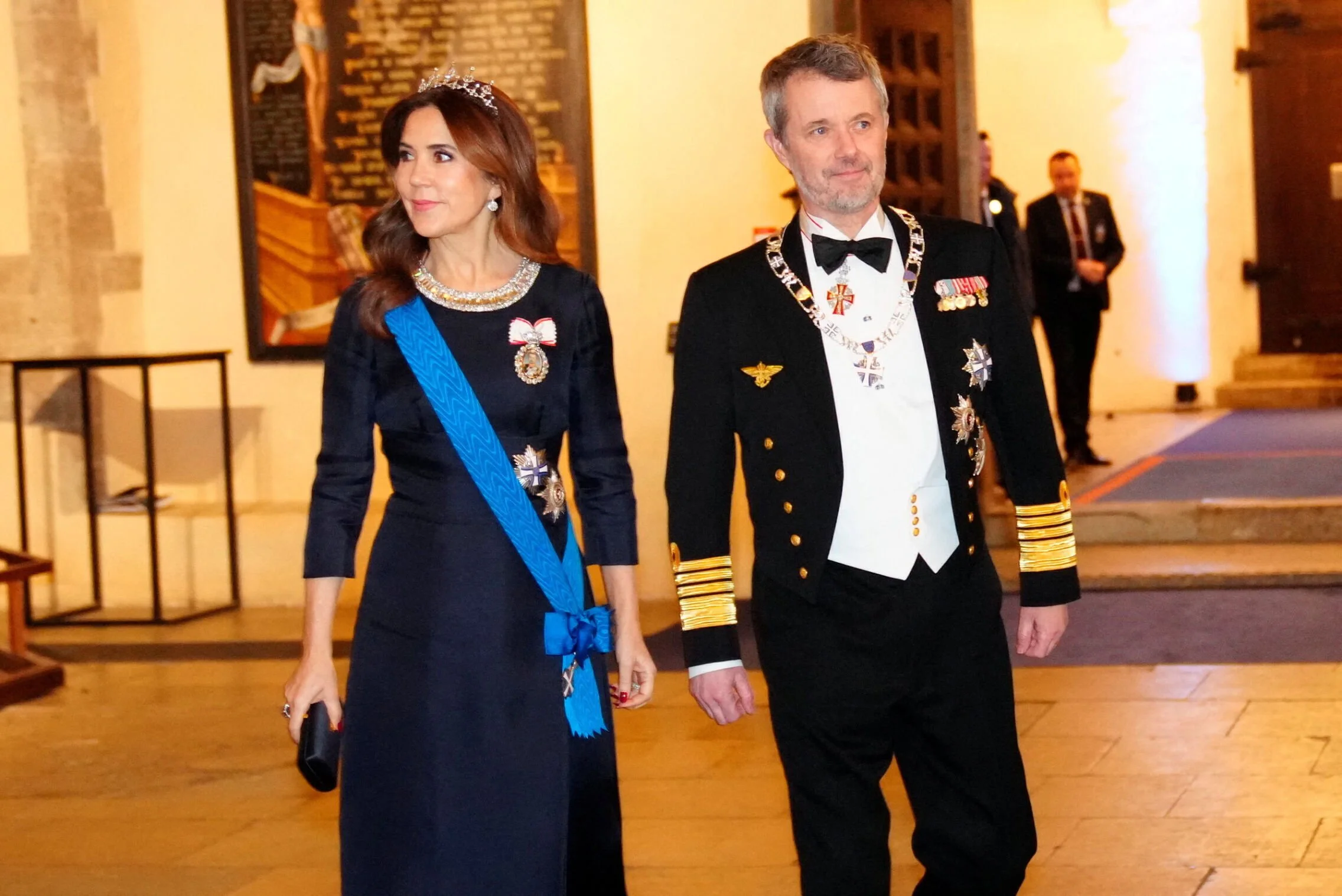 King Frederik X and Queen Mary of Denmark attend a state banquet with a concert hosted by Estonia's President, Alar Karis and First Lady Sirje Karis at St. Nicholas Church during their state visit on 27 January 2026 in Tallinn, Estonia.