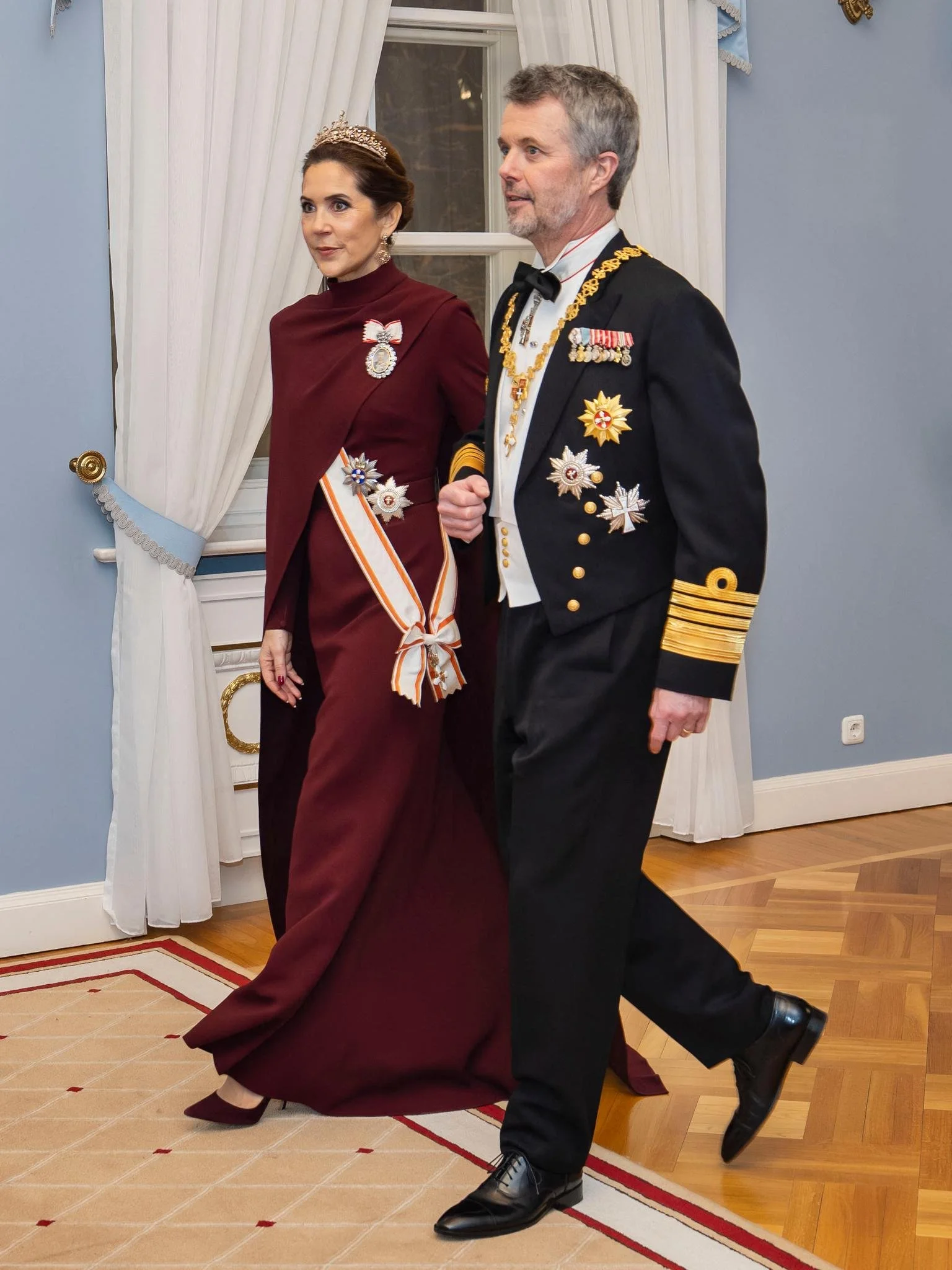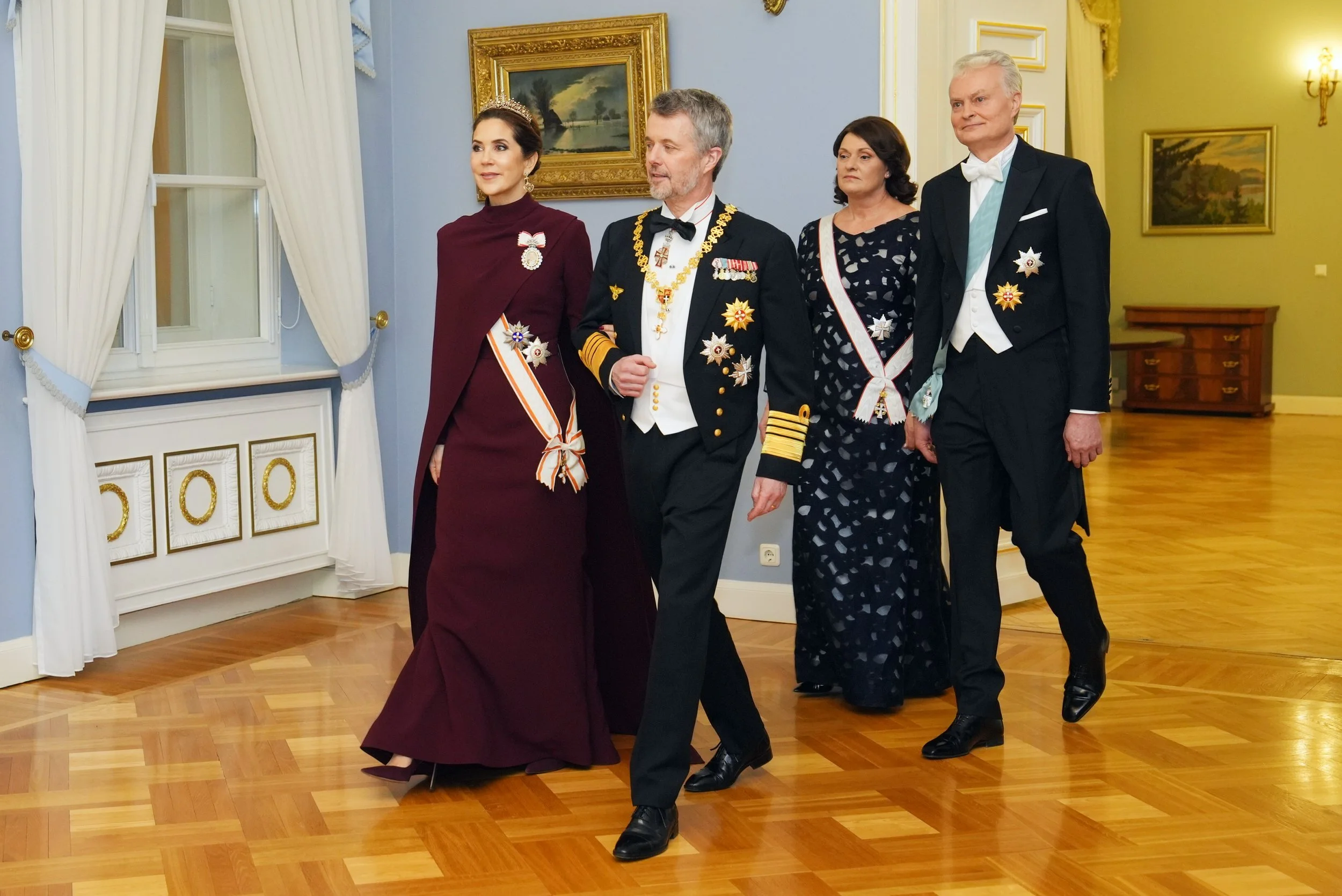 King Frederik X and Queen Mary of Denmark attend a state banquet hosted by Lithuania's President Gitanas Nauseda and his wife Diana Nausediene at Presidential Palace during their state visit on 28 January 2026 in Vilnius, Lithuania.