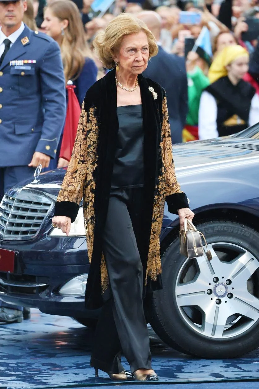 King Felipe of Spain, Queen Letizia of Spain, Infanta Leonor, Princess of Asturias, Infanta Sofia of Spain and Queen Sofia of Spain arrive at the Princess of Asturias awards ceremony at Teatro Campoamor on 20 October 2023 in Asturias, Spain.